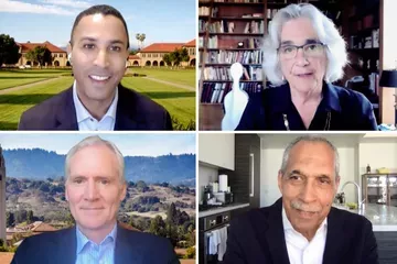 Joining Drell and President Marc Tessier-Lavigne at the “Campus Conversation: Stanford’s Racial Justice Initiatives” were Claude Steele, the Lucie Stern Professor in the Social Sciences, Emeritus, and Stanford trustee and alumnus Charles Young. Steele co-chairs Stanford’s Community Board on Public Safety and the Framework Task Force. Young, who is chief operating officer and executive vice president of Invitation Homes, chairs the university’s Black Community Council.